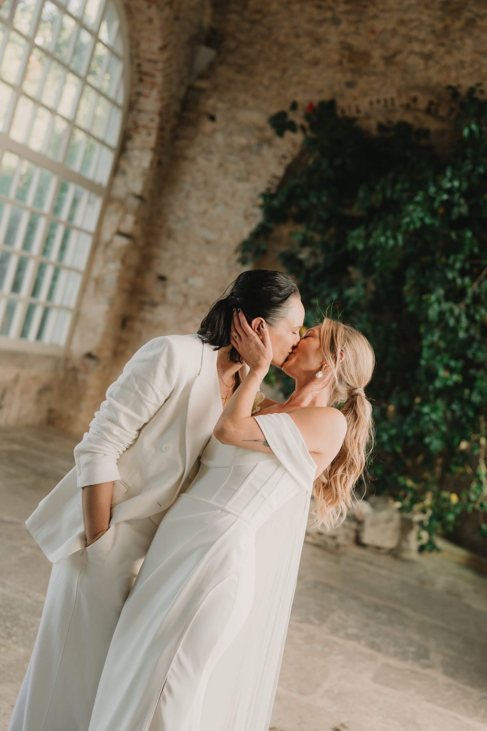 Jen and Nic’s same-sex destination wedding at Forte do Estoril, just outside Lisbon, was the perfect mix of relaxed vibes and cool elegance. These brides from Chicago, who fell in love with Portugal during their travels, chose the breathtaking seaside venue to celebrate their love story. The day was filled with laughter, heartfelt moments, and effortless style, perfectly reflecting their “opposites attract” energy. As their wedding photographer, I felt an instant connection with Jen and Nic, which made capturing their day feel completely natural and deeply meaningful. If you’re dreaming of a destination wedding in Portugal that is both laid-back and stylish, Lisbon and the Estoril Coast are the perfect setting.